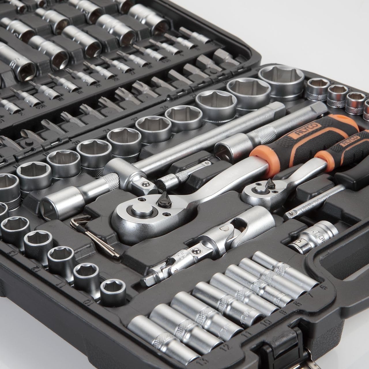 Home CHAVES DE CAIXA, BITS E ACESSÓRIOS JOGO CHAVES 1/2+/14 108PÇS JOGO CHAVES 1/2+/14 108PÇS 18 unidades em stock | SKU: 170740 83,90 € 141,20 € Desconto de %. IVA incluído. Comprar Contactar Adicionar à wishlist 108 peças fabricadas en aço cromo-vanadio. 1/2"-1/4Roquetes de 72 dientes PRAZOS ENTREGA: * Stock Disponível (envio imediato) / "Quantidades superiores ao disponível contactar por email." * No armazém central (entrega em 2-3 dias uteis) * No armazém europeu (entrega em 3-6 dias uteis) * Pedido mediante solicitação ou disponibilidade limitada, o prazo de entrega será confirmado após o pedido. Marca ALYCO TOOLS Partilhar