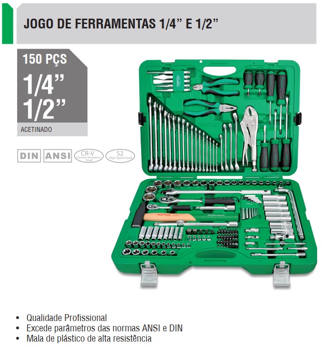 Home CHAVES DE CAIXA, BITS E ACESSÓRIOS JOGO FERRAMENTAS 1/2" E 1/4" 150PÇS JOGO FERRAMENTAS 1/2" E 1/4" 150PÇS SKU: GCAI150R 541,20 € Desconto de %. IVA incluído. Comprar Contactar Adicionar à wishlist PRAZOS ENTREGA: * Stock Disponível (envio imediato) / "Quantidades superiores ao disponível contactar por email." * No armazém central (entrega em 2-3 dias uteis) * No armazém europeu (entrega em 3-6 dias uteis) * Pedido mediante solicitação ou disponibilidade limitada, o prazo de entrega será confirmado após o pedido. Marca TOPTUL - Ferramentas Profissionais Características Partilhar
