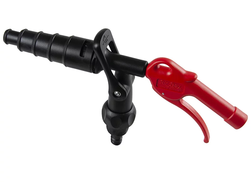 O Jet Flusher está equipado com ajustes para fluxo de ar e água, que podem ser facilmente ajustados para a saída necessária. Além disso, permite que o abastecimento de água seja fechado diretamente no Jet Flusher em vez de na torneira, durante uma pausa ou na troca do bico. A água pode ser conectada usando o bocal fornecido (1/2" /ø13 mm) que se adapta à maioria dos acoplamentos de água comuns ou usando a rosca de mangueira de água GHT de 3/4" integrada.