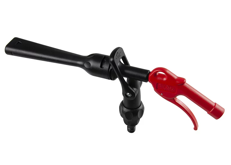Ao usar os ajustes para fluxo de ar e água, o JWL Jet Washer pode ser facilmente configurado para a saída solicitada. Além disso é possível desligar a água diretamente na pistola de lavagem. Além disso, o suporte giratório integrado permite que a mangueira de água conectada gire livremente em torno da pistola de lavagem. A água pode ser conectada usando o bico fornecido (1/2 " /ø13 mm) que se adapta aos acoplamentos de água mais comuns ou usando a rosca de mangueira de água GHT de 3/4 " embutida.